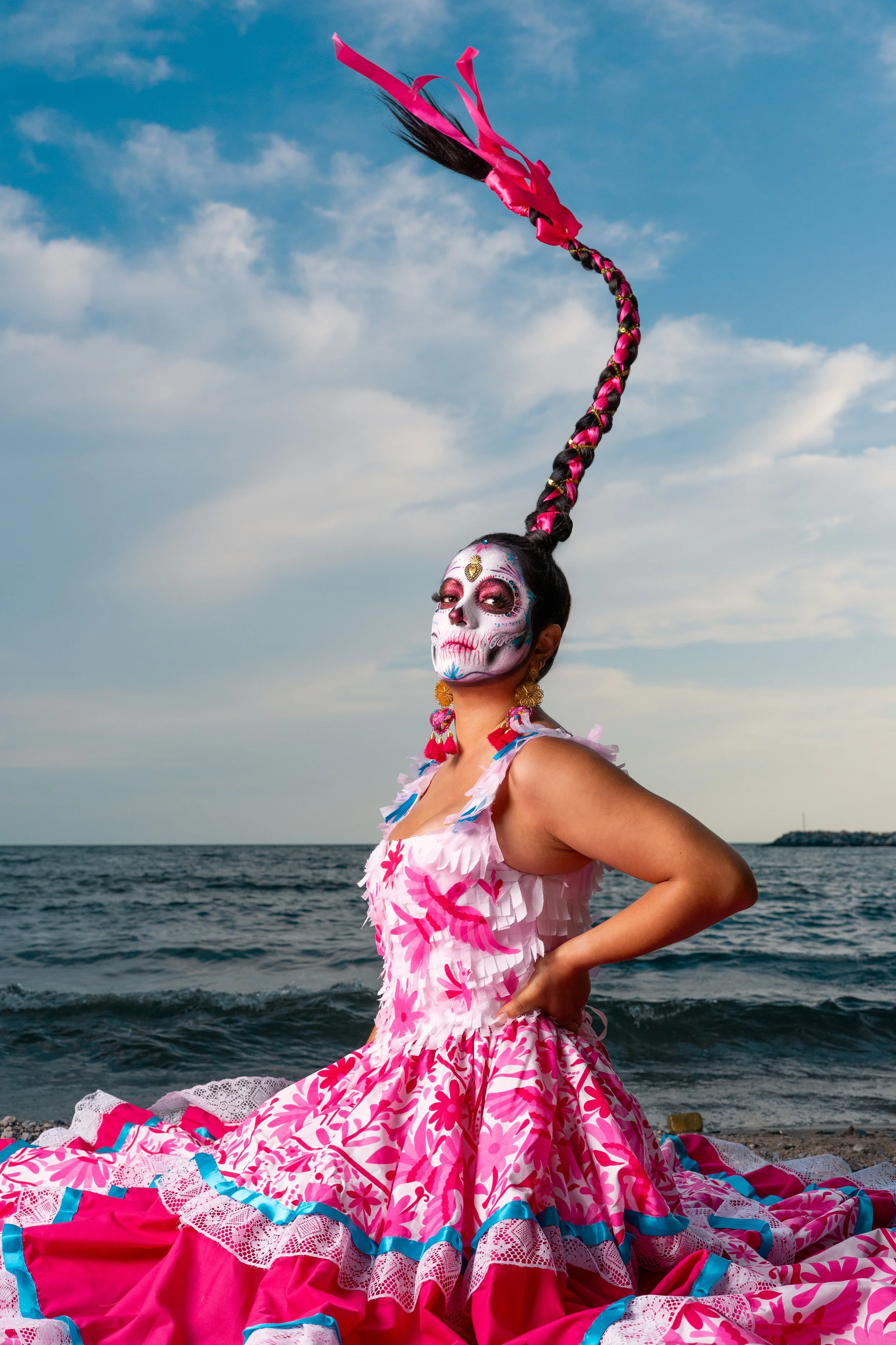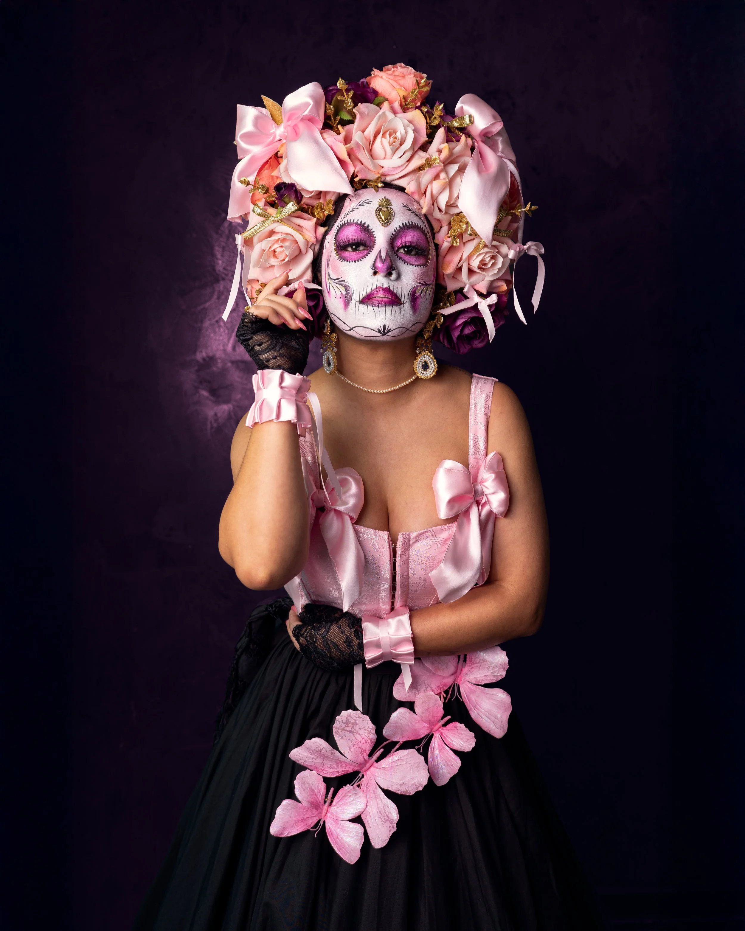 I first met María José Miranda (MJ) during her participation at the Harbourfront Day of the Dead (Día de los Muertos) Festival many years ago. She complimented me on my attempt at the traditional Catrinas makeup - a style inspired by the symbolic La Calavera Catrina (1913) - which incorporates ornate skull-like designs in celebration of life. It wasn’t long after our initial run-in that we came together to collaborate on our first photoshoot, highlighting her detailed and intricate makeup and styling. Since then, we’ve collaborated on shoots multiple times each year and have plans to exhibit our shared vision to the world.